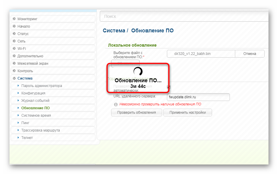 Каждая версия прошивки модели D-Link DIR-320 оснащена встроенной функцией, позволяющей автоматически получить обновления. Преимущество этого метода заключается в том, что можно зайти в веб-интерфейс роутера удаленно, после чего выполнить там такие действия: