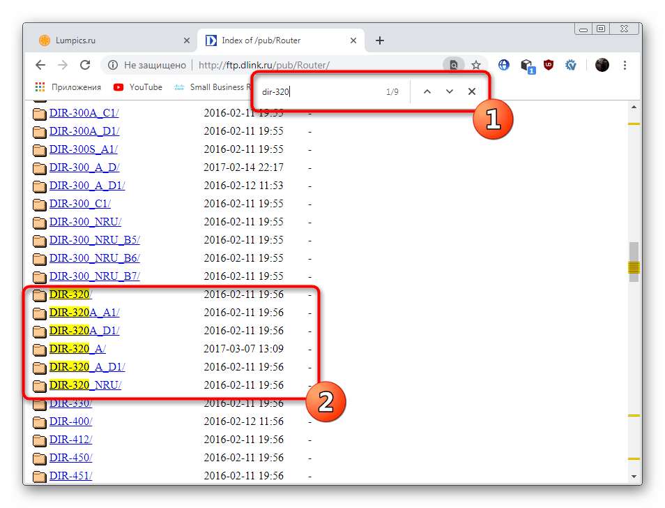- Перейдите по указанной выше ссылке, чтобы попасть на официальный FTP-сервер компании D-Link. Там хранятся все необходимые файлы для всех типов роутеров.