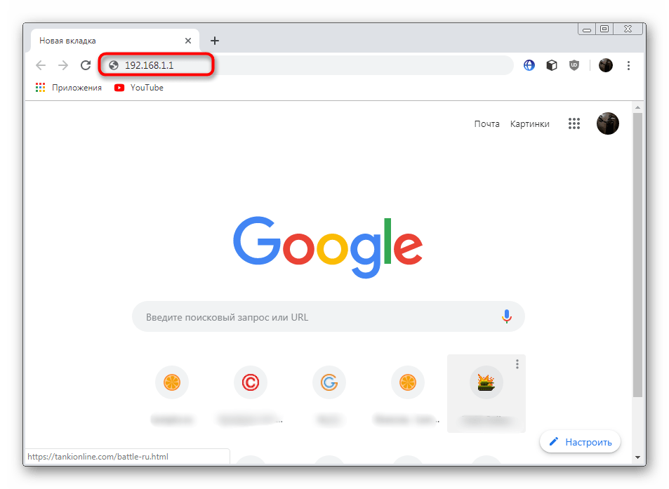 - Откройте веб-интерфейс, перейдя по адресу 192.168.1.1 или 192.168.0.1 через любой удобный браузер.