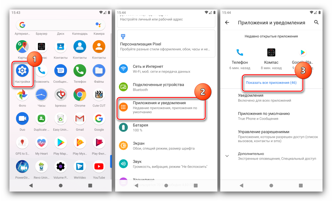 - Откройте «Настройки» – «Приложения и уведомления» – «Показать все приложения».