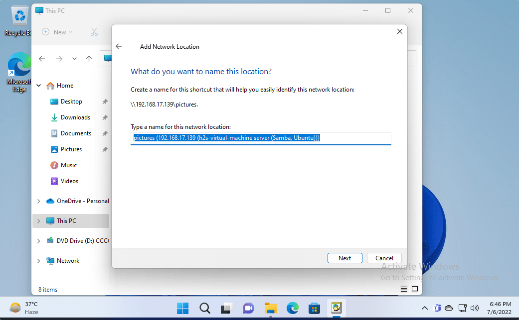 В следующем окне вы можете изменить имя общего расположения. Нажмите Далее и затем нажмите Готово для завершения процесса.