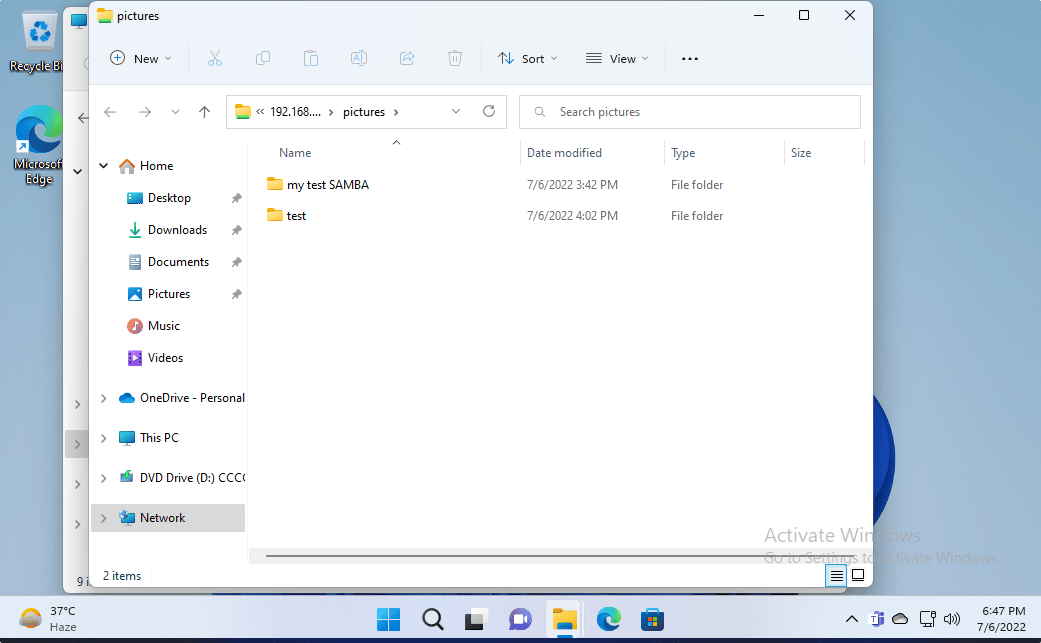 Вы увидите, что соединение установлено. Теперь вы можете получить доступ к файлам на сервере Samba.