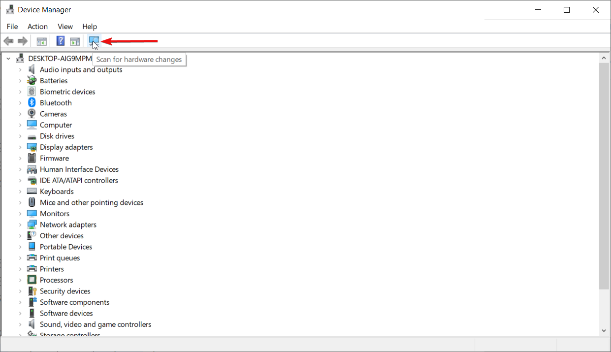 5. Когда закончите, нажмите на Сканировать аппаратные изменения значок или вы можете просто перезагрузить компьютер.