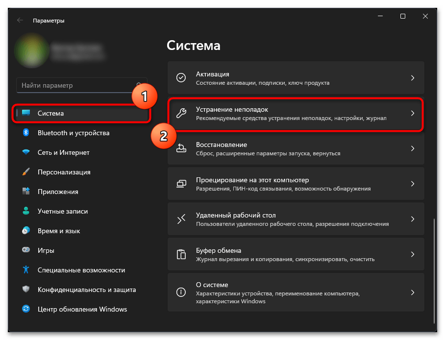 Выберите раздел «Система» и в списке настроек найдите «Устранение неполадок».