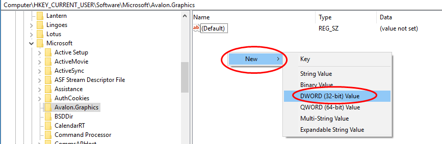 3) Перейти к HKEY_CURRENT_USER > Программного обеспечения > Microsoft > Авалон.Графика .