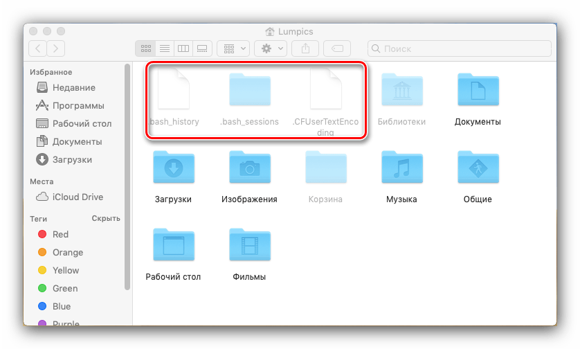 Раскройте Finder, чтобы удостовериться, что команда выполнена, и скрытые файлы видны: они обозначены более тусклыми цветами.