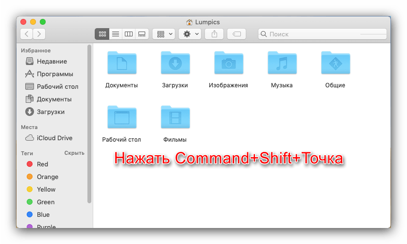 «Яблочная» операционная система также известна активным задействованием горячих клавиш для почти всех возможных действий. Включить или отключить отображение скрытых файлов тоже можно посредством их использования.