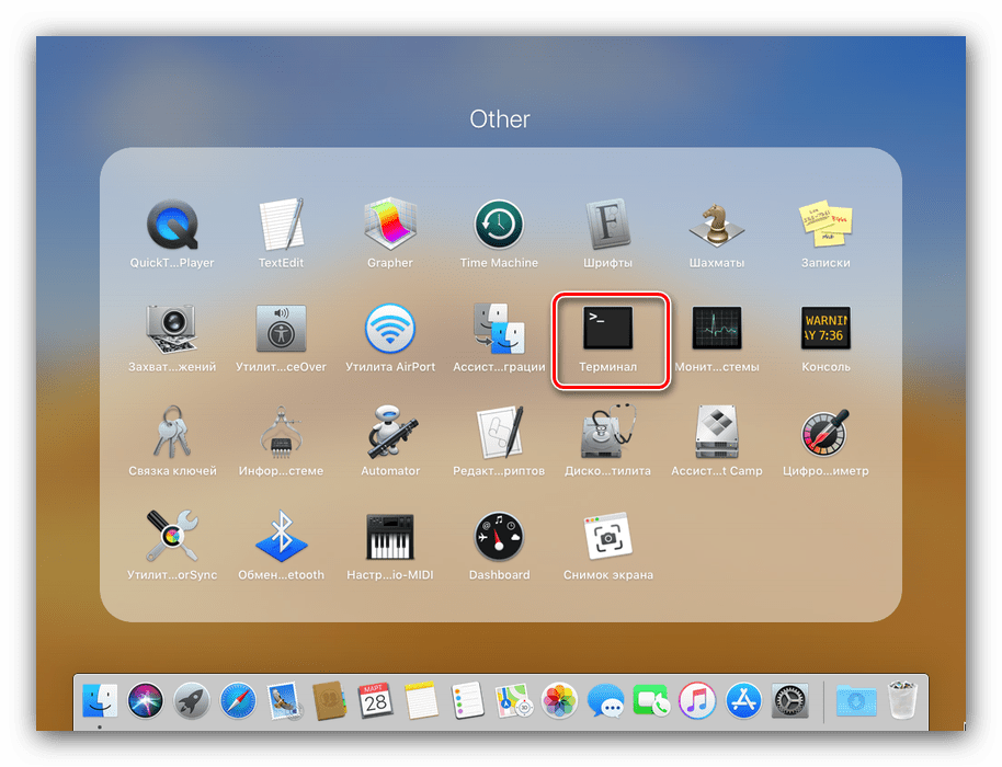 Запустите программу Terminal (она находится Applications/Utilities/ или выполните поиск ее с помощью spotlight)