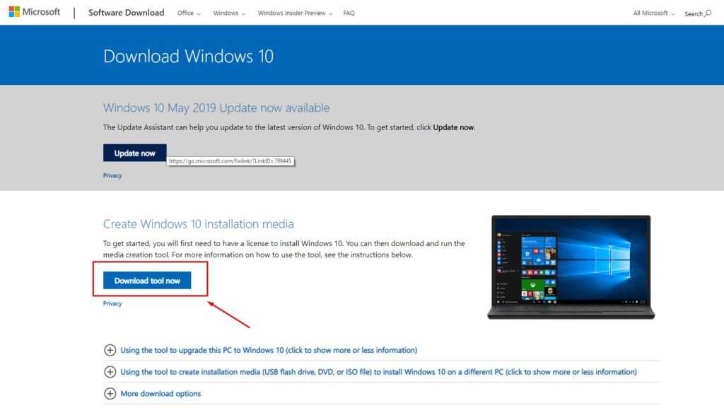 Официальный от Microsoft инструмент Media Creation Tool позволяет обновить компьютер до последней версии, выполнить чистую установку системы, скачать образ или создать установочный носитель с Windows 10. Проблема заключается в том, что с её помощью нельзя записать ранее загруженный образ системы на диск, можно только после очередной загрузки.
