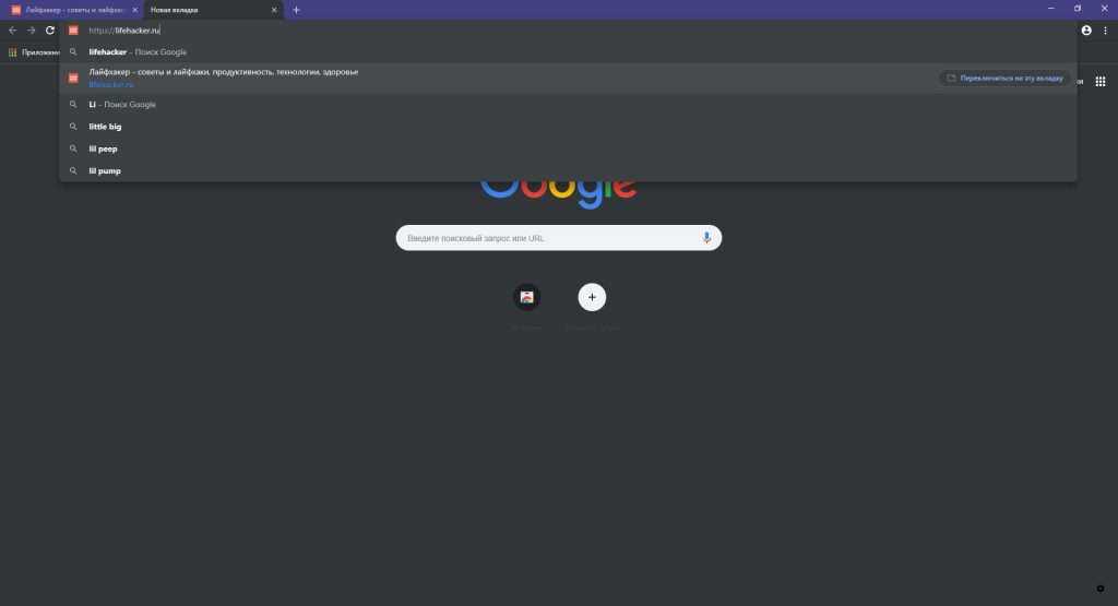 В основном клиенте Chrome тёмную тему можно установить из магазина приложений. Однако чернеют не только вкладки и стартовая страница, но и выпадающее меню поисковика.