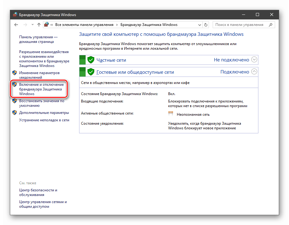 Если настройки общего доступа в системе корректные, но проблемы с распознаванием сетевого принтера всё ещё наблюдаются, причина может заключаться в настройках брандмауэра. Дело в том, что в Windows 10 этот элемент безопасности работает достаточно жестко, и кроме усиленной безопасности, приводит также и к негативным последствиям.