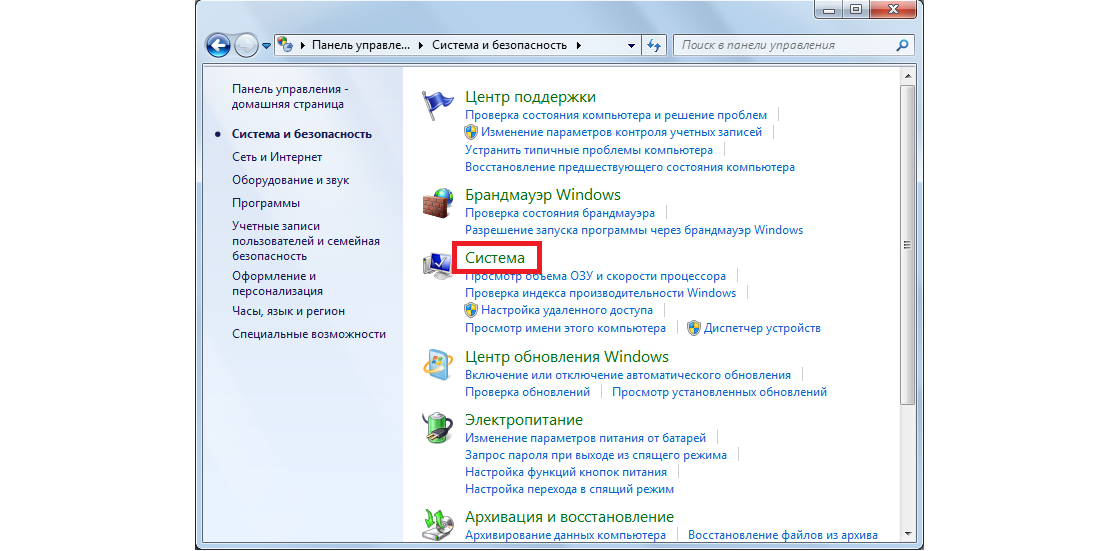 Рис. 5. Раздел «Система и безопасность» в панели управления