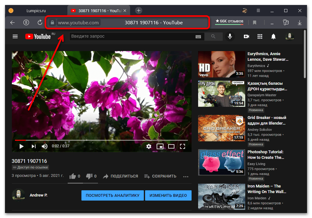 Следующим действием необходимо получить прямую ссылку на загруженную видеозапись, посетив для этого страницу ролика и скопировав данные из адресной строки веб-браузера