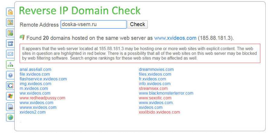 - присутствие adult-сайтов (обычно из легко определить уже по названию домена);