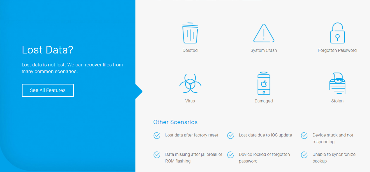 Набор инструментов Dr. fone для программного обеспечения восстановления системы iOS может эффективно восстановить потерянные данные для вашего устройства iOS следующими способами.