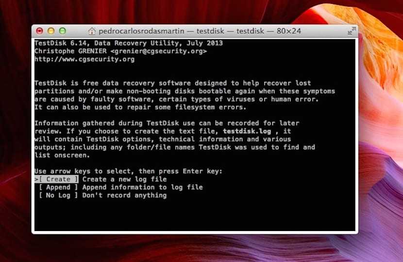 Теперь, чтобы запустить TestDisk, нам нужно будет открыть файл, который мы скачали. Когда вы дважды щелкаете по нему, он распаковывается и создает папку с именем во время публикации этого сообщения «Тестдиск-6.14». Открываем папку и ищем файл с названием «testdisk» со значком Терминала. Сделайте, дважды щелкните по нему и мы принимаем.