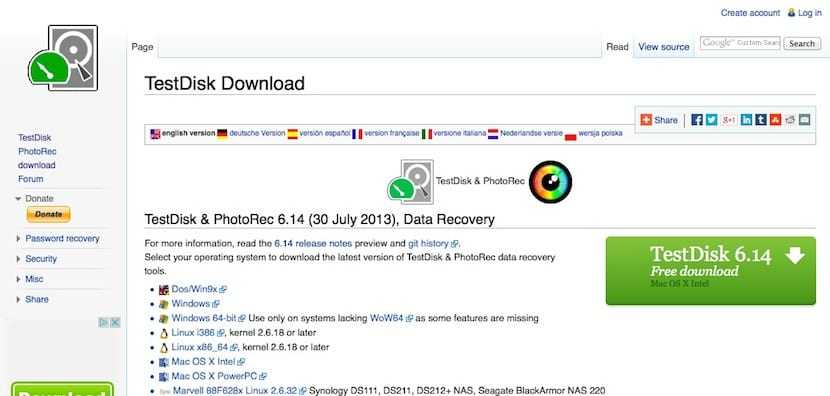 Скачиваем и устанавливаем TestDisk со страницы CGSecurity. Это приложение для восстановления удаленных файлов и разделов.