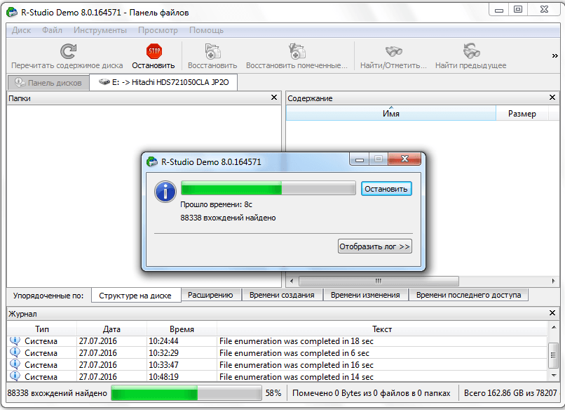 Программа Unformat определяет удаленные разделы, тип файловой системы, качество результатов, первый и последний сектор раздела. Всю информацию о процессе можно отследить через журнал.