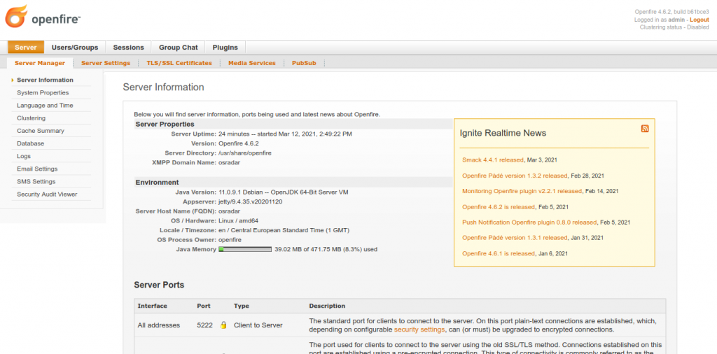 Openfire написан на языке JAVA и для своей работы требует установки соответствующей платформы.