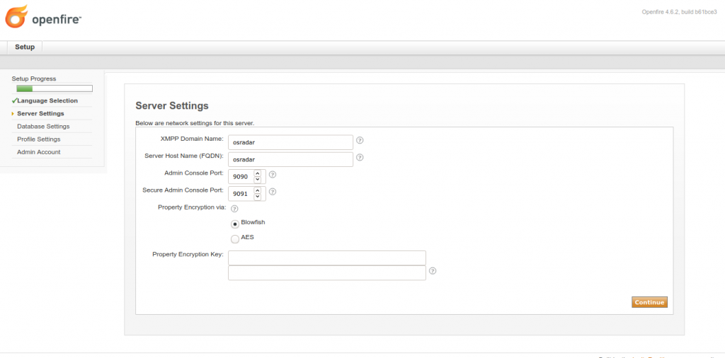 Then set the server options. There you will be able to configure the XMMP domain and define other ports to replace the default ones.