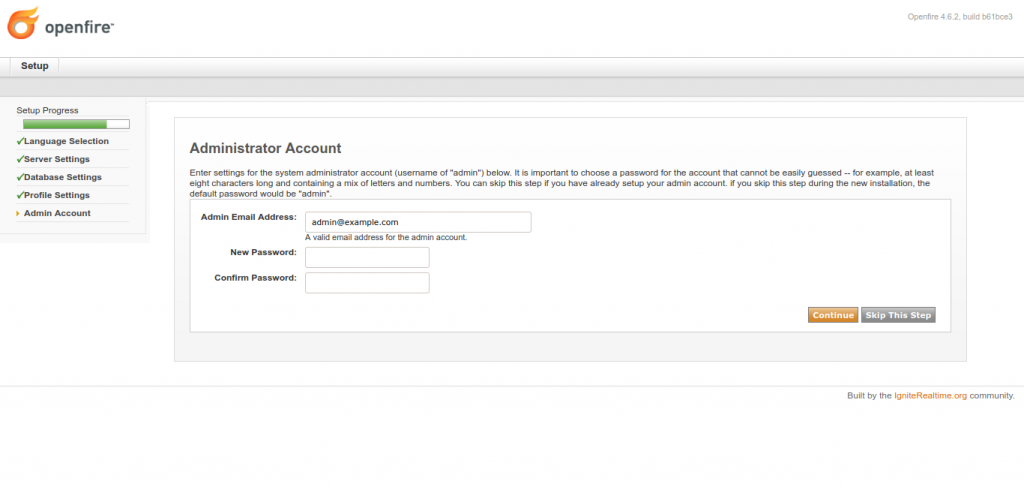 I am trying to get Openfire to install on an Ubuntu virtual machine, however upon completing the web based installer, I am unable to login to the admin panel.
