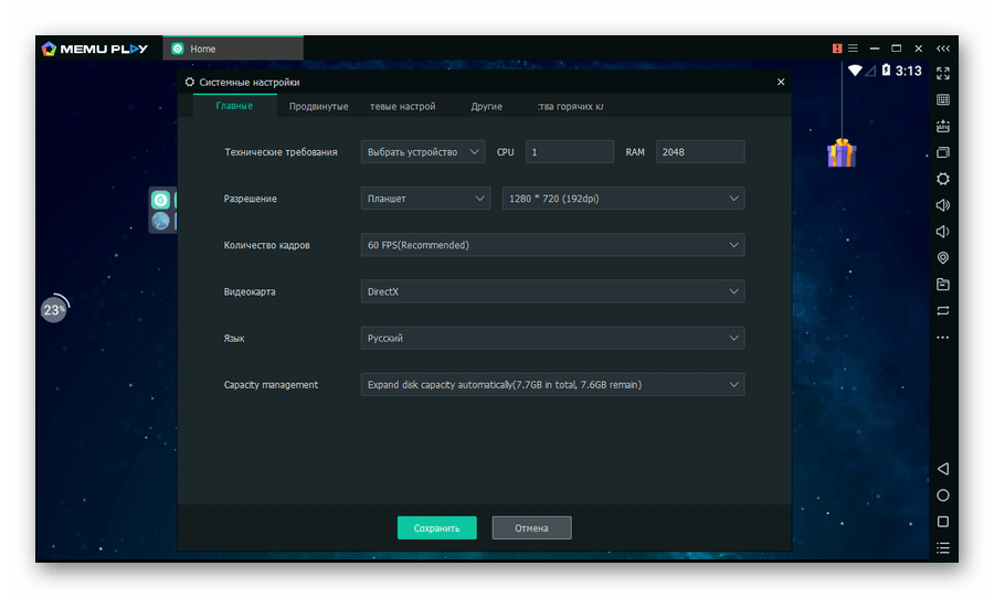 Там нужно обратить внимание всего на два пункта: какое количество ядер у процессора, а также объем оперативной памяти. Многие эмуляторы позволяют изменять необходимые ресурсы