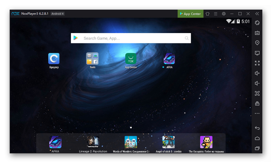 Магазин Плей Маркет в Nox установлен по умолчанию, так что после входа в аккаунт Google есть возможность устанавливать и запускать любые приложения.