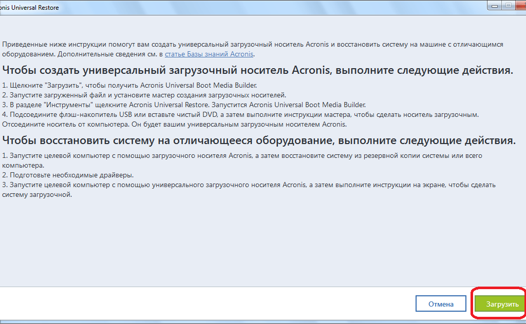 Загрузка с загрузочного носителя, при невозможности загрузки операционной системы Windows, позволит запустить Acronis True Image для проведения восстановления системного диска.