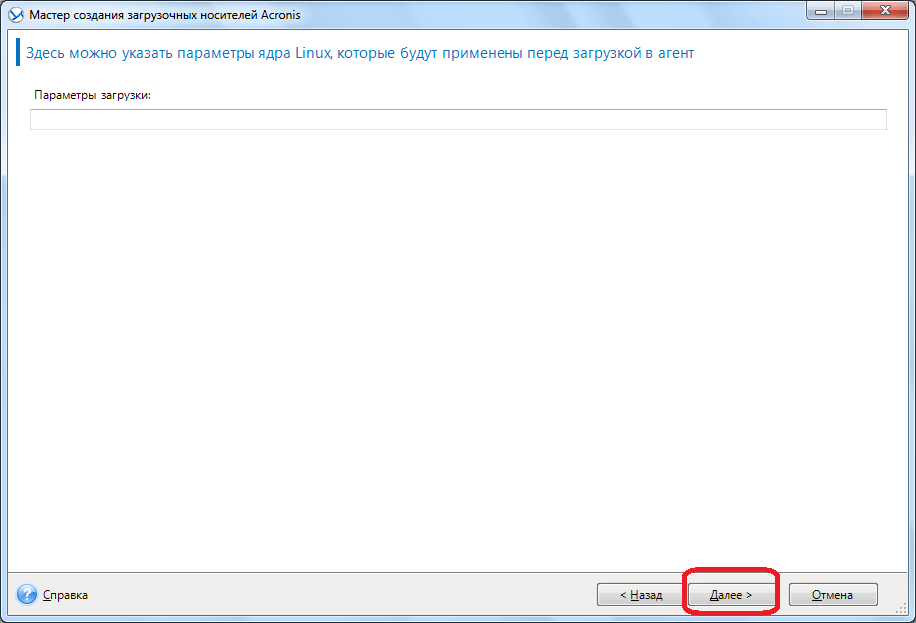В открывшемся окне вы можете указать параметры загрузки, а можете оставить поле пустым. Опять жмем на кнопку «Далее».