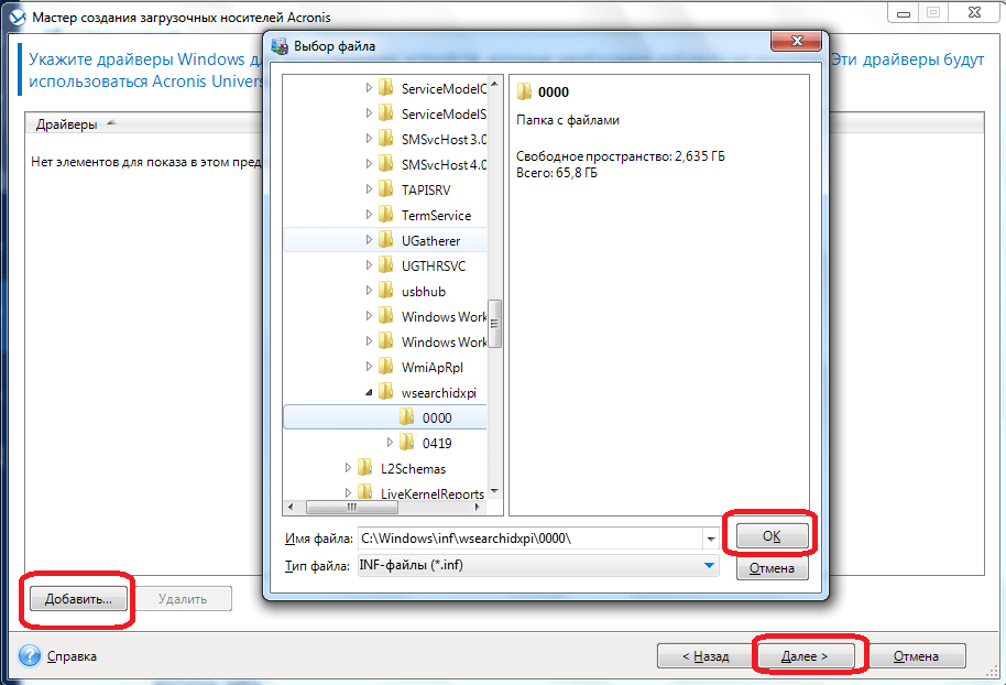 В следующем окне выбираем подготовленные драйвера Windows, и опять жмем на кнопку «Далее».