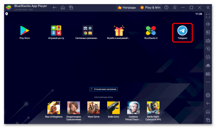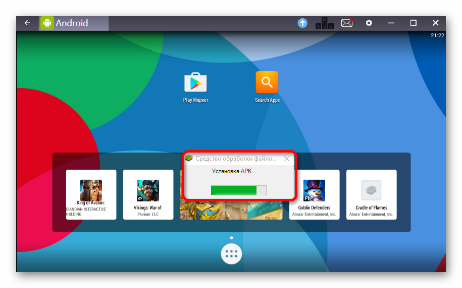 В обоих случаях после запуска начнется инсталляция приложения или игры внутри эмулятора. Как только установка завершится, иконка отобразится в главном окне.