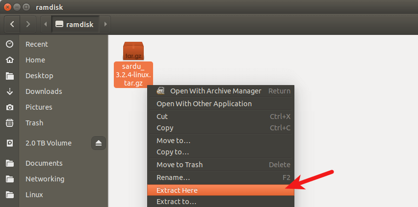 Once downloaded, open your file manager and go to the downloads directory. Extract the gzip archive.