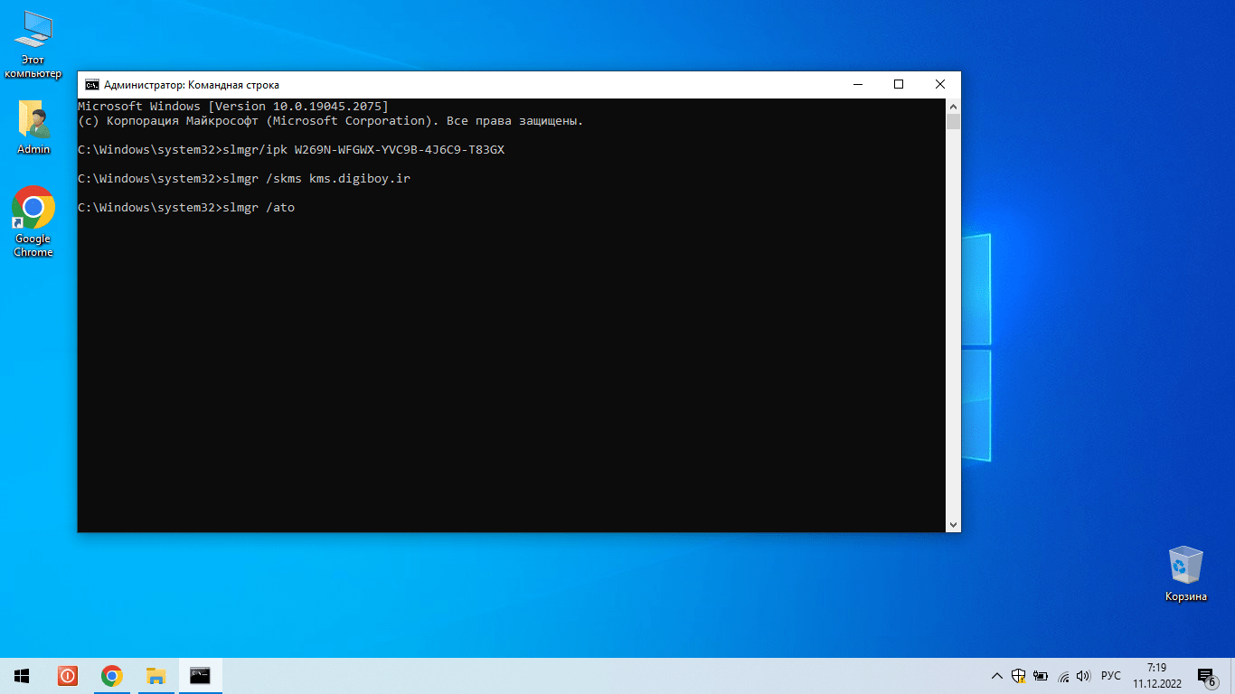 3- Следующая команда slmgr /ato (Рис.11) Нажимаем Enter.