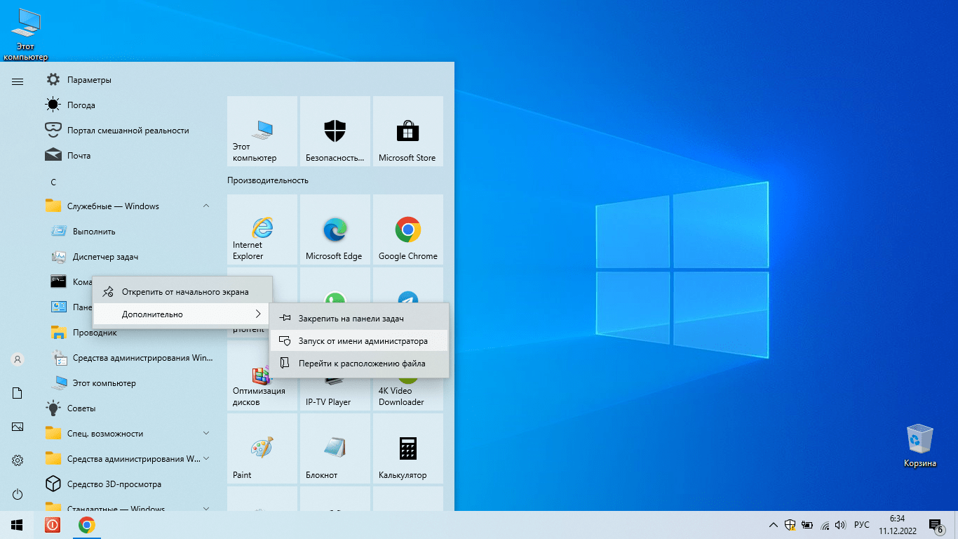 Далее нужно открыть Командную строку через меню: Пуск — Служебные Windows — Командная строка (запустить от имени администратора) (Рис.3).