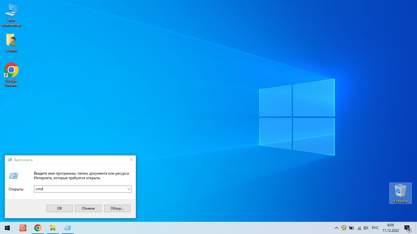 Или, чтобы вывести нам Командную строку, нажимаем комбинацию клавиш WIN+R, в поле вводим команду cmd. Далее нажатием клавишу Enter (Рис.4)