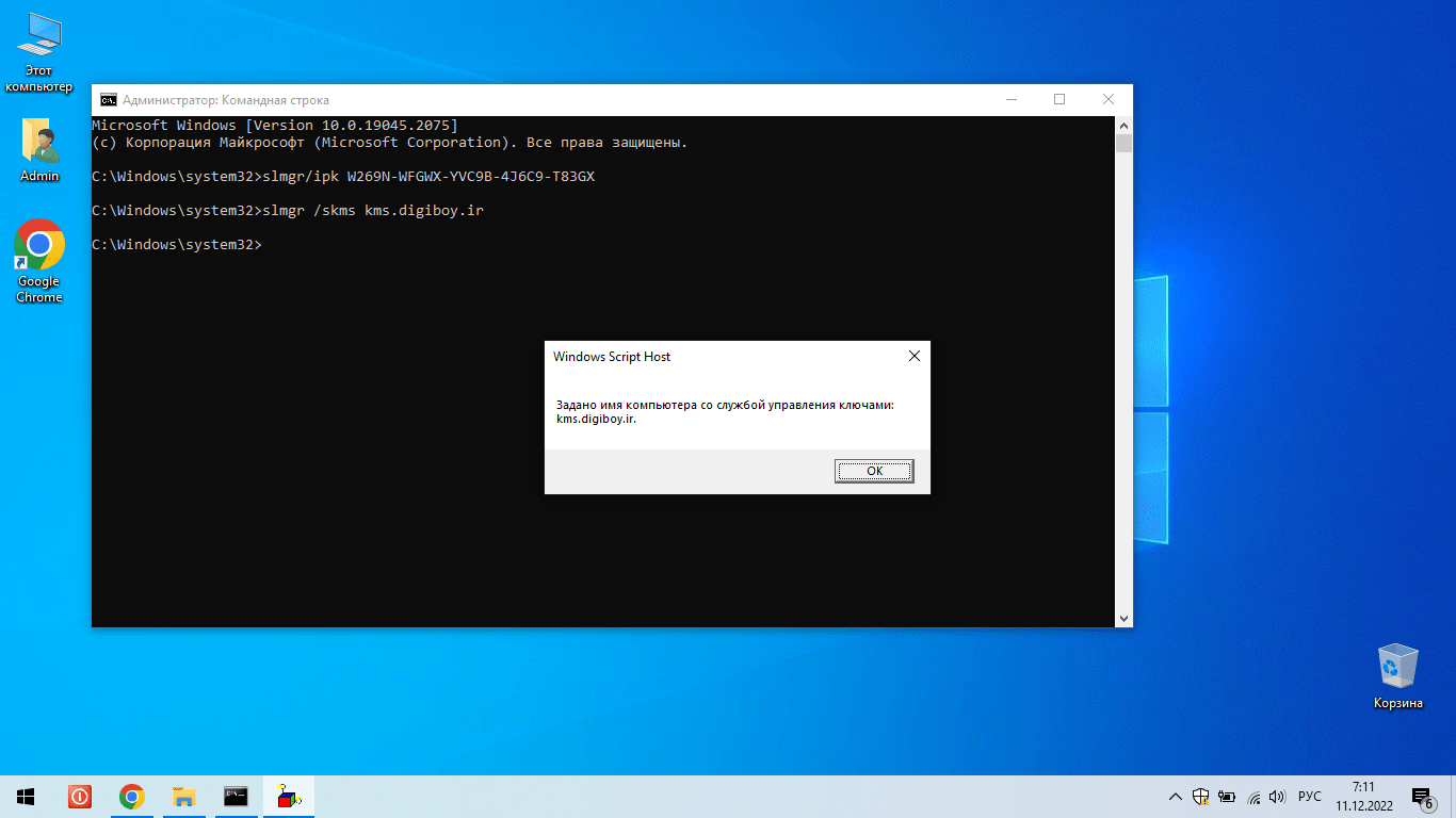 2- Следующая команда slmgr /skms kms.digiboy.ir (Рис.9) Нажимаем Enter