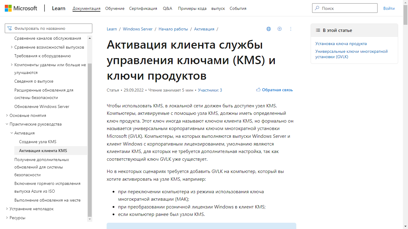 Мы открыли сайт майкрософт с ключами, он нам понадобится чуть позже, пока сворачиваем его.