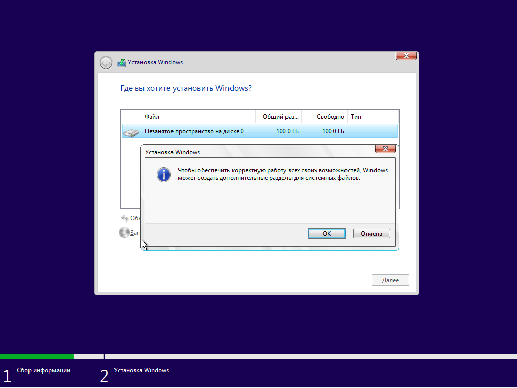 Если сделаете все безошибочно, то установщик обнаружит новый «Раздел 2» — это и есть будущий диск С.