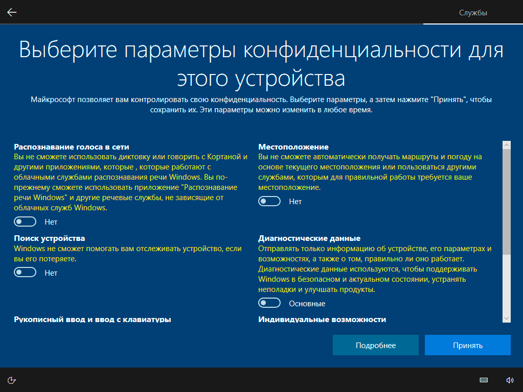 Выключите все параметры, если желаете быть анонимным. Нажмите «Принять».