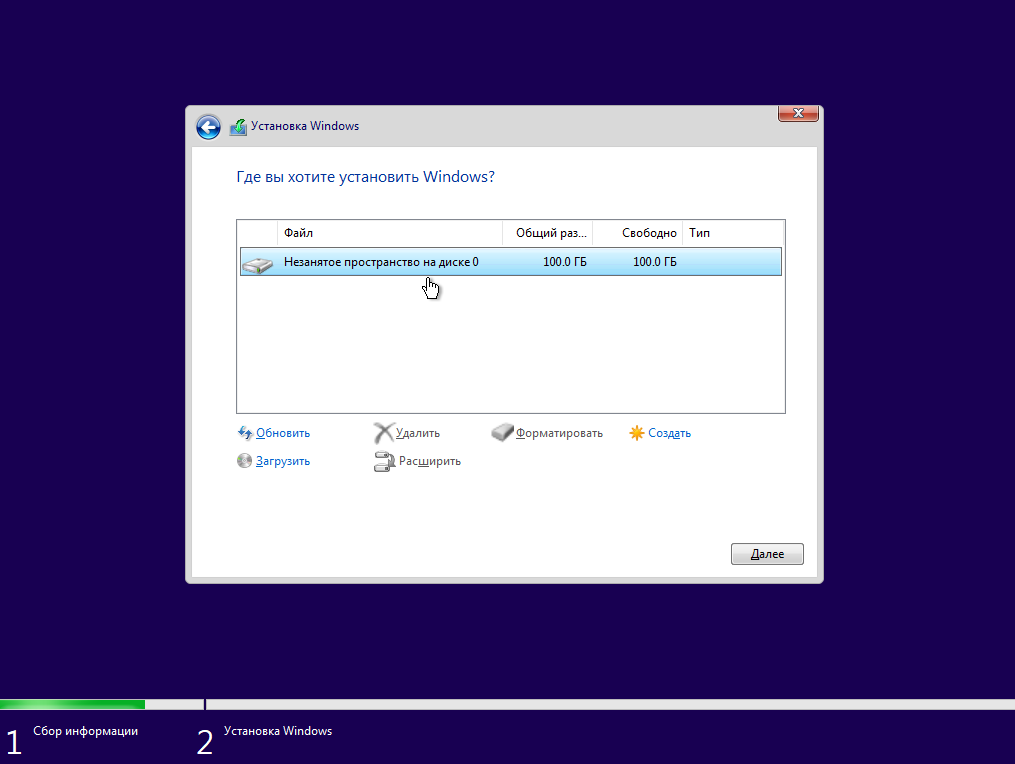 У вас есть совершенно новый, неиспользованный твердотельный накопитель или жесткий диск, на который вы также пытаетесь установить Windows. В этом случае диск уже будет отображаться как «Нераспределенное пространство», поэтому найдите единственный диск, который отображается как полностью нераспределенное пространство, а общий размер должен быть примерно равен размеру добавленного вами диска. Игнорируйте любые другие диски, так как их разбиение должно быть решено позже.Нажмите «Далее» на этом диске, чтобы установить Windows.