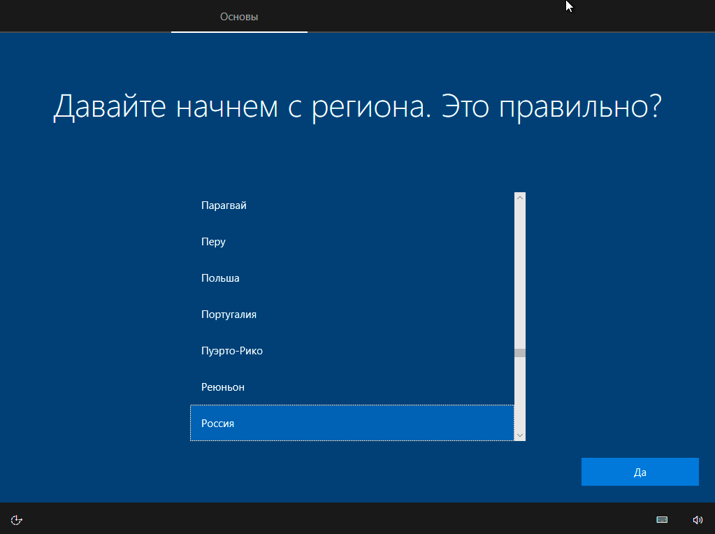 Выберете свою дислокацию. В примере рассмотрим параметры для России. Нажмите «Да» в правом нижнем углу.