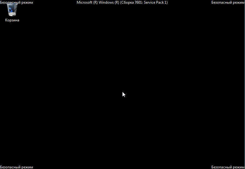 В безопасном режиме (Safe Mode) работы компьютер загружается, используя только базовый минимальный набор устройств, драйверов, служб и компонентов, необходимых для его работы с настройками по умолчанию. Все остальное используемое в нормальном режиме работы компьютера отключается. При этом разрешение монитора становится очень низким, цвет рабочего стола черный и по углам дисплея появляются надписи «Безопасный режим».