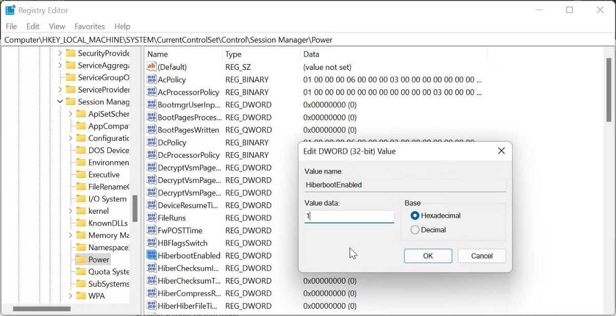 HKEY_LOCAL_MACHINE\SYSTEM\CurrentControlSet\Control\Session Manager\Power