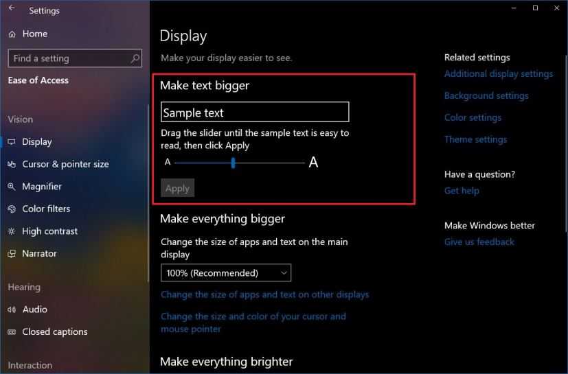 However, starting with Windows 10 version 1809, the feature is back as part of the “Display” settings in the Ease of Access section of the Settings app.