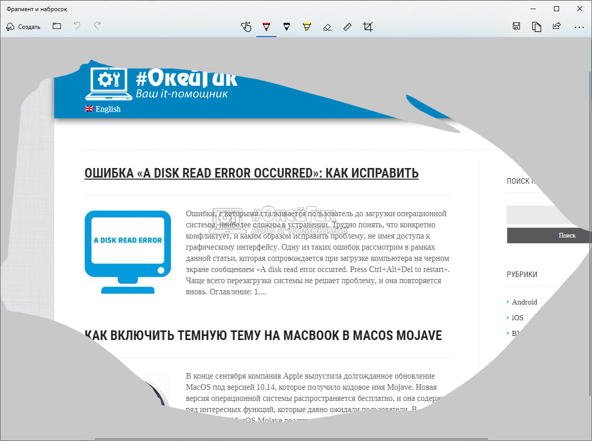 - Win + Shift + S теперь будет отображать обрезку панель инструментов.