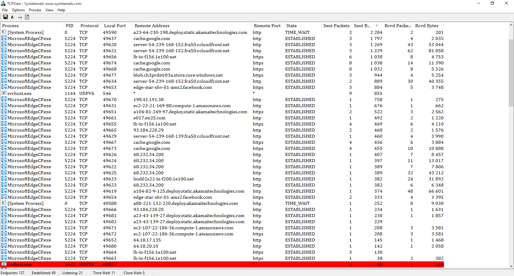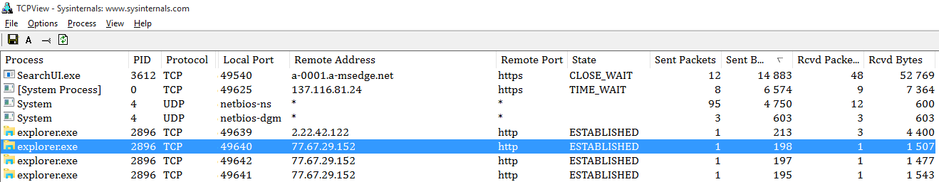 Перечень соединений так быстро обновлялся, что просто так и не уследишь. Поэтому мы приступили ко второй части исследования. Закрыли все приложения, поставили сниффер Wireshark и записали активность Windows за полчаса. Чтобы сымитировать хоть какую-то активность, мы просто смотрели некоторые настройки в панели управления, но не меняли их.