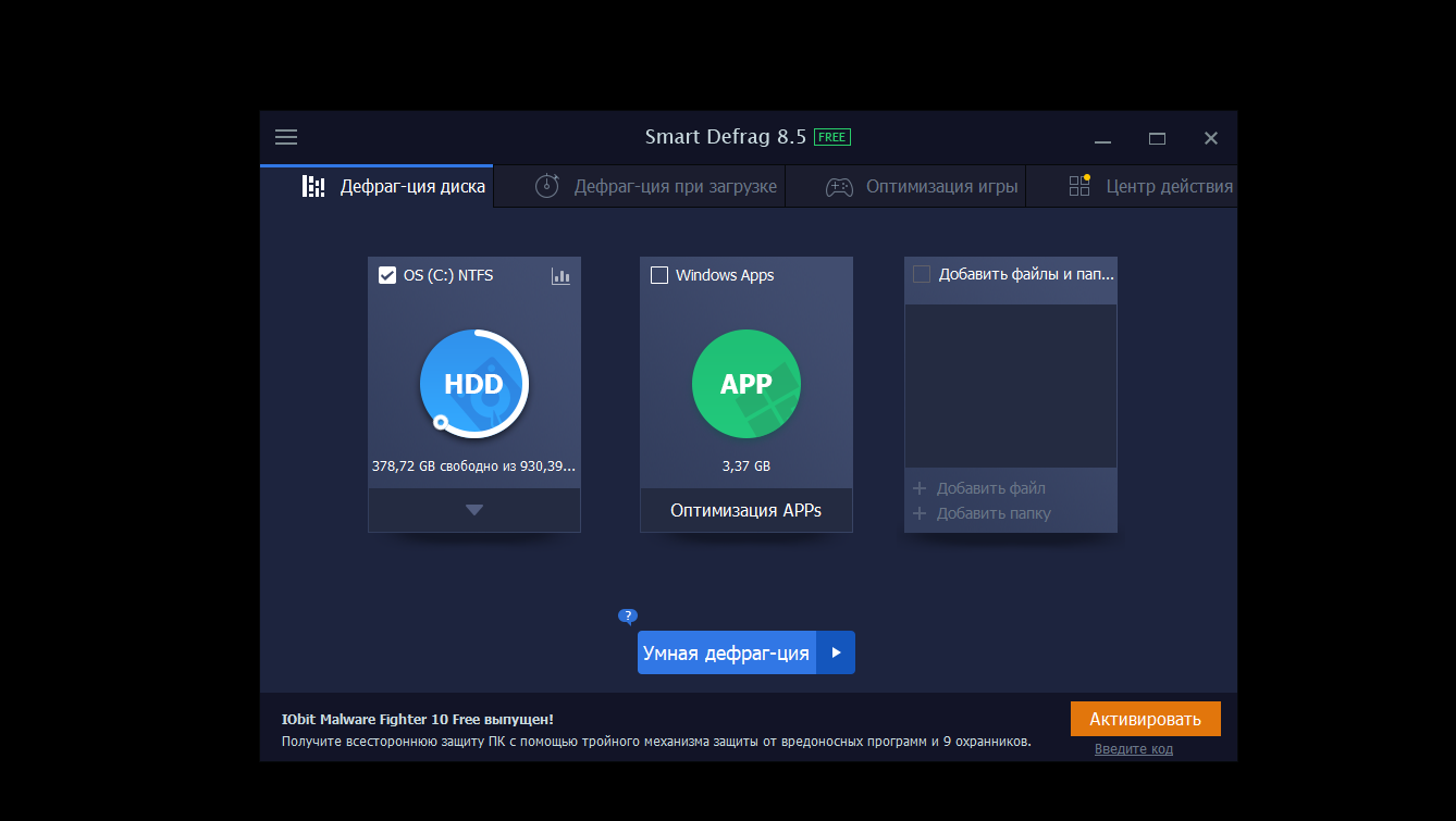 Программа для дефрагментации, которая делает упор на скорость. Как и конкуренты, умеет работать отдельно с разными областями диска. Например, папками, приложениями или конкретными файлами.