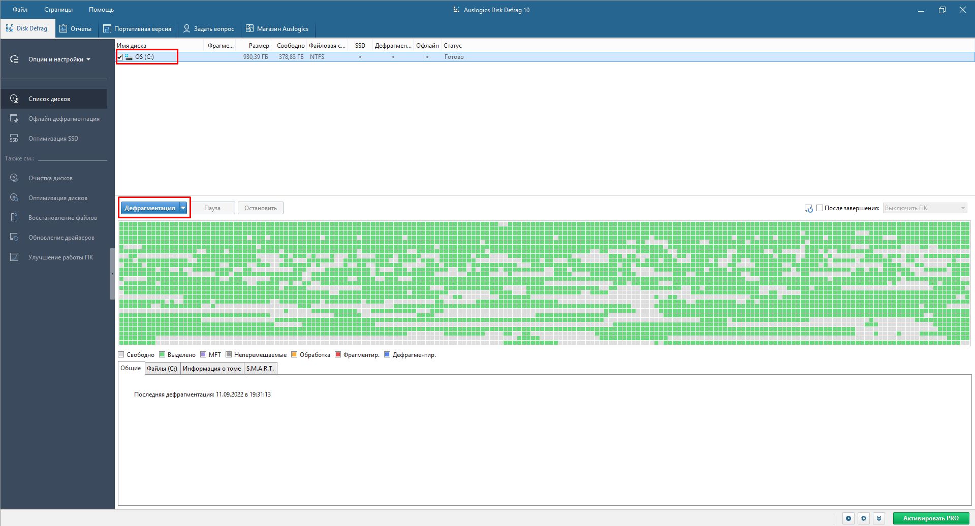 Как выполнить дефрагментацию диска через Auslogics Disk Defrag