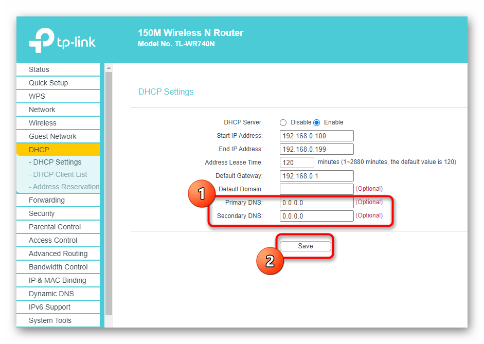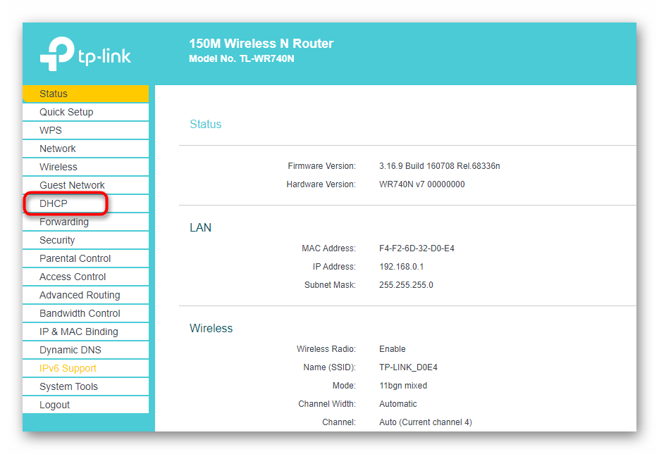 Способ 5: Проверка DHCP-сервера в настройках роутера