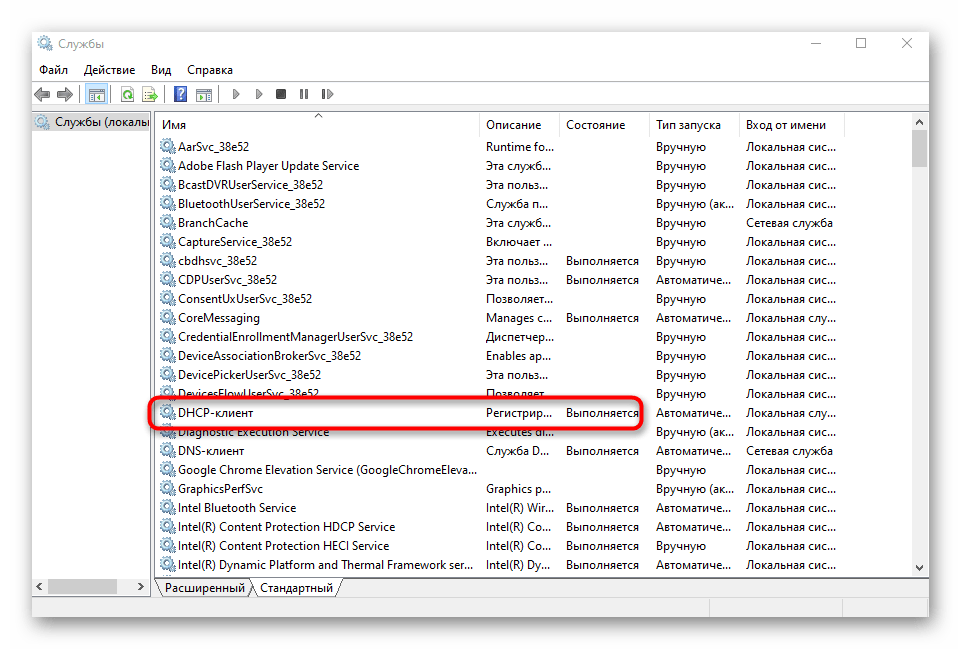 Иногда ошибка «DHCP не включен на сетевом адаптере Ethernet» может возникать из-за проблем со службой DHCP-клиента, поэтому от пользователя требуется проверить ее работоспособность и по необходимости настроить автоматический режим запуска.